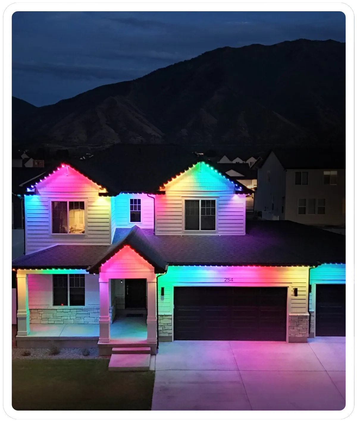 Permanent lighting installed for $19 per foot, plus a one-time $450 smart controller that powers the entire system. Transparent pricing. No surprises.